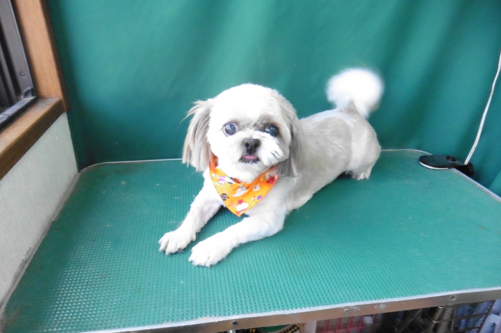 美容中もペッとベロを出しながら尻尾ブンブン