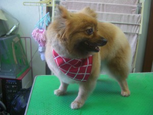 お次、ポメラニアンの女の子 鋏カット