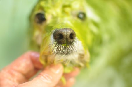 自分でカットしてるプードル君